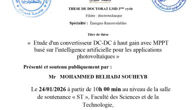 Félicitations à notre collègue Mr MOHAMMED Belhadj Souheyb pour sa soutenance de doctorat. MOHAMMED Belhadj Souheyb a réussi avec succès…